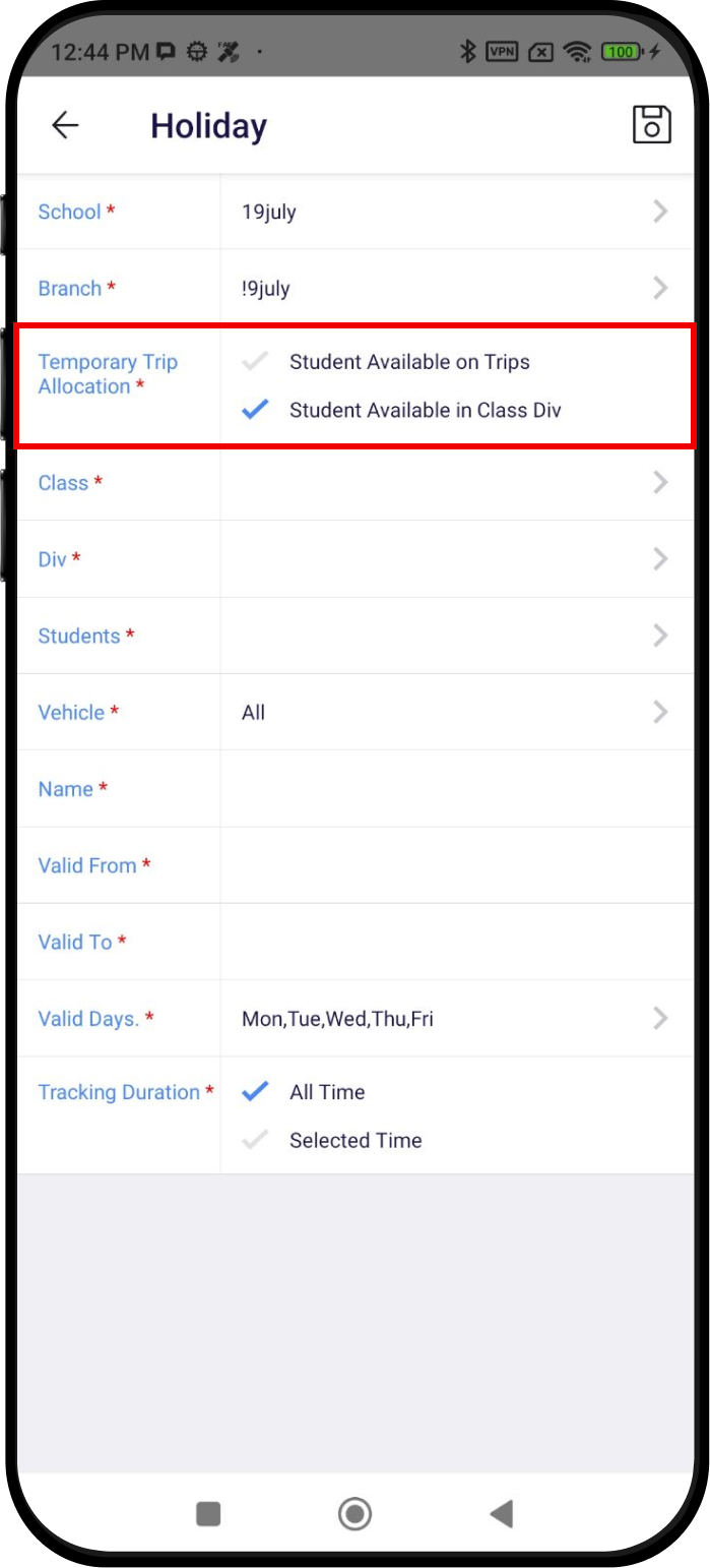 This temporary tracking screen allows managers to track students’ vehicles without sending notifications, providing an easy solution during critical times.