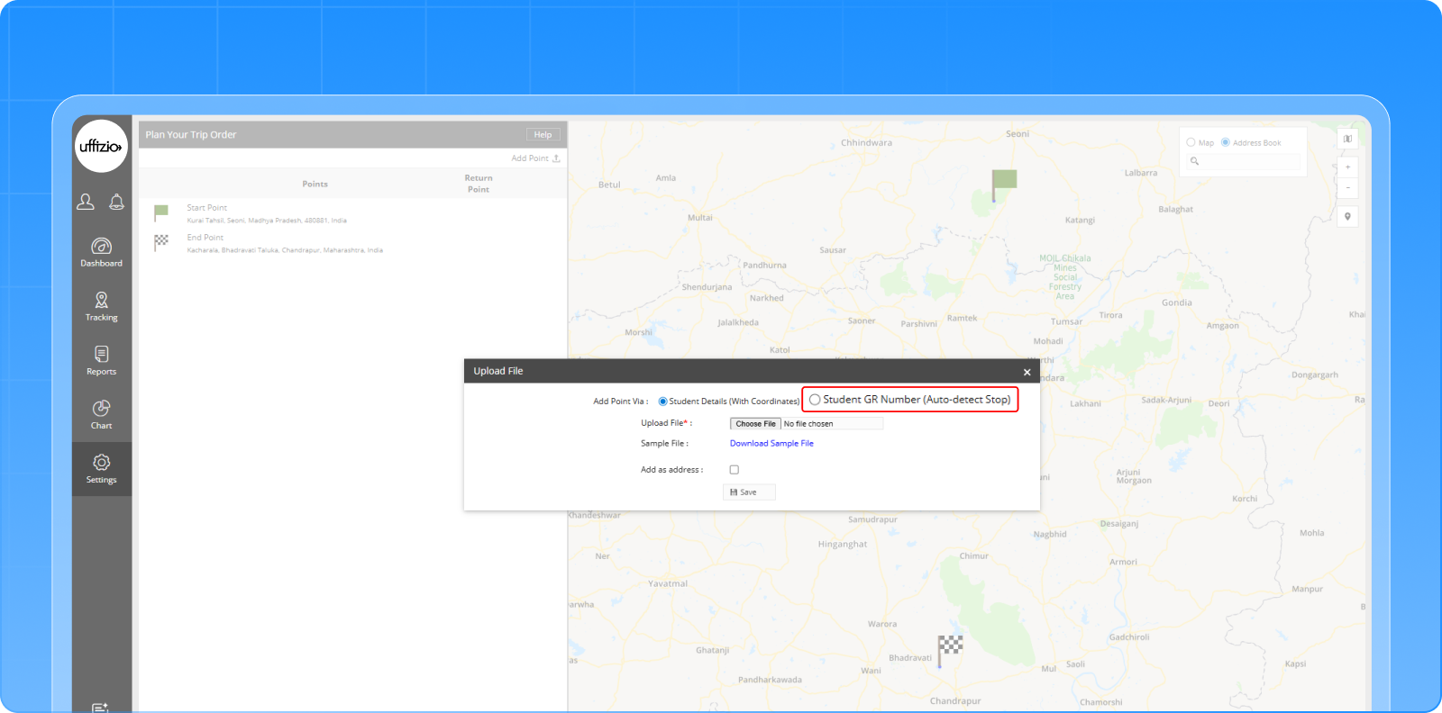 We have added a smarter way to create trips. Now, you can upload Student GR Numbers and SmartBus will automatically detect their pickup or drop locations to create checkpoints. No need to upload coordinates manually.