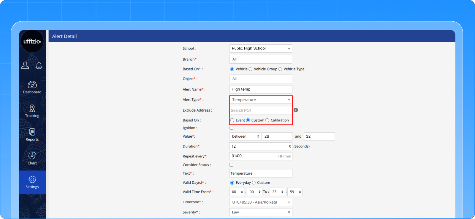 - Alerts are triggered instantly when the device sends a temperature event.